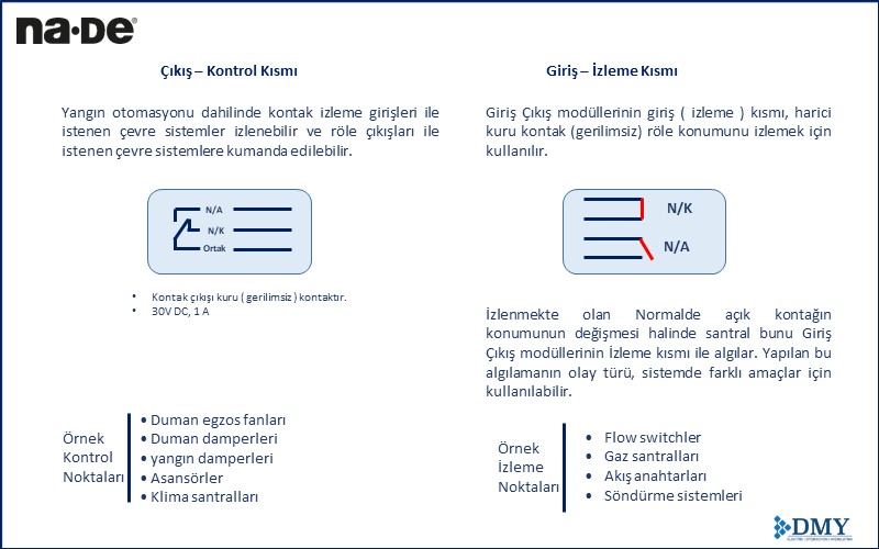 Yukarıda belirtilen işlemler yangın algılama sistemlerinde Giriş Çıkış modülleri kullanılarak gerçekleştirilebilmektedir.