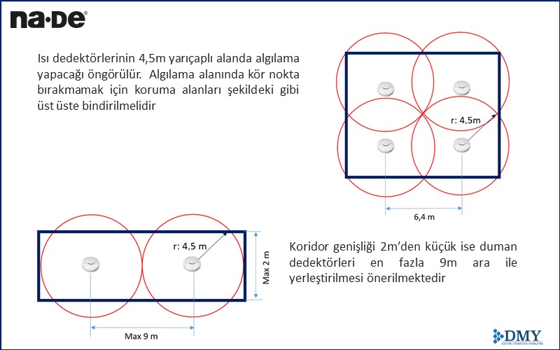 Bu dedektörler özellikle mutfak, çay ocağı, otopark, çamaşırhane, ütü odası, kazan dairesi gibi duman, buhar veya tozun yoğun bulunduğu alanlarda tercih edilir. Çünkü bu tür ortamlarda duman dedektörleri yanlış alarm verebilir. TS CEN/TS 54-14 standardına göre ısı dedektörleri 8 metreye kadar yüksekliğe sahip alanlarda kullanılabilir. Projelendirme sırasında dedektörler arası mesafe, tavan yapısı ve havalandırma menfezleri dikkate alınmalıdır. Ayrıca her bir dedektörün 4,5 metre yarıçapında algılama yaptığı göz önünde bulundurulmalı ve kör nokta kalmaması için alanlar çakıştırılarak yerleştirilmelidir.
