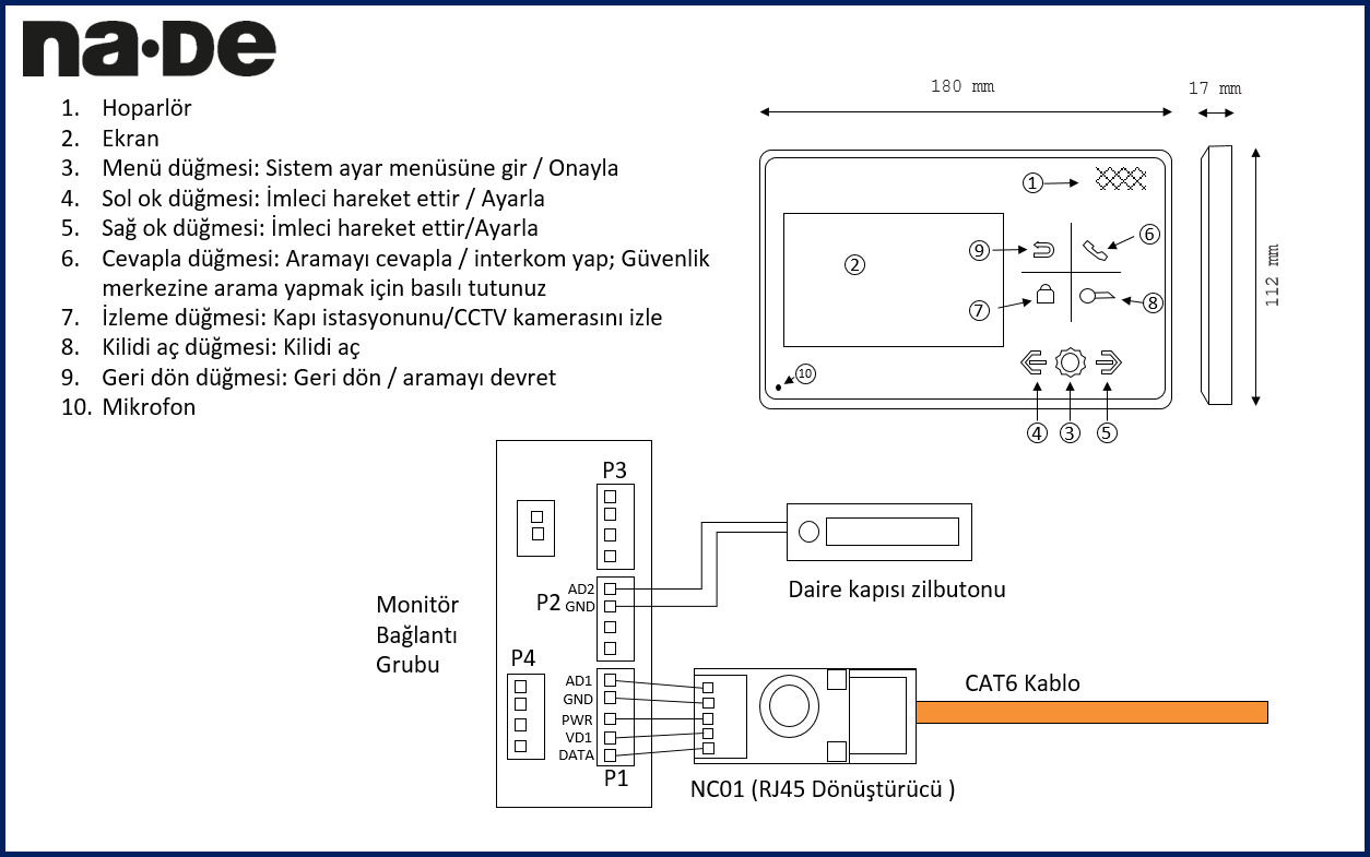 | • | Daireler arası görüşebilme | • | Kolay montaj ve kablo bağlantısı |