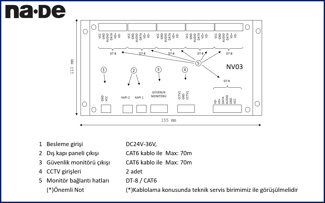 | (*)Önemli Not | (*)Kablolama konusunda teknik servis birimimiz ile görüşülmelidir |