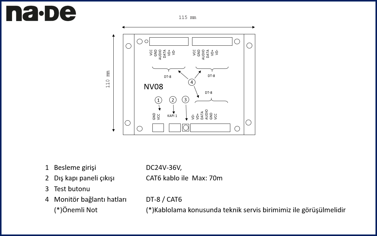 | (*)Önemli Not | Kablolama konusunda teknik servis birimimiz ile görüşülmelidir |