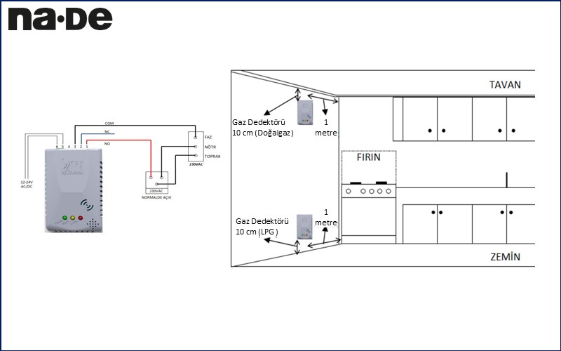 Ev ve benzeri yerlerde kullanılmak üzere havadaki patlayıcı gazları algılayabilen (doğalgaz ve LPG) bir cihazdır. Bu tür tehlikeli gazların tespit edilmesi durumunda, cihaz buzzerı(zil) ile sesli, LED’i ile ise ışıklı uyarı sağlar. Röle çıkışı ile alarm durumunda çalışması istenilen cihazlara bağlanabilir.(solenoid valf,siren gibi). Ortamda bulunan gazların patlama veya parlama oluşturmayacak kontrasyon sınırına Alt Patlama Sınırı(APS) denir.Doğalgazın APS değeri %5, LPG(tüpgaz)’ın %3 olup gaz alarm cihazı gaz sızıntısı bu değerin beşte birine ulaşmadan cihaz alarm vermeye başlar.Doğalgaz için %0.5 veya 5000 ppm LPG için ise de %0.3 veya 3000 ppm alarm verme noktalarıdır.