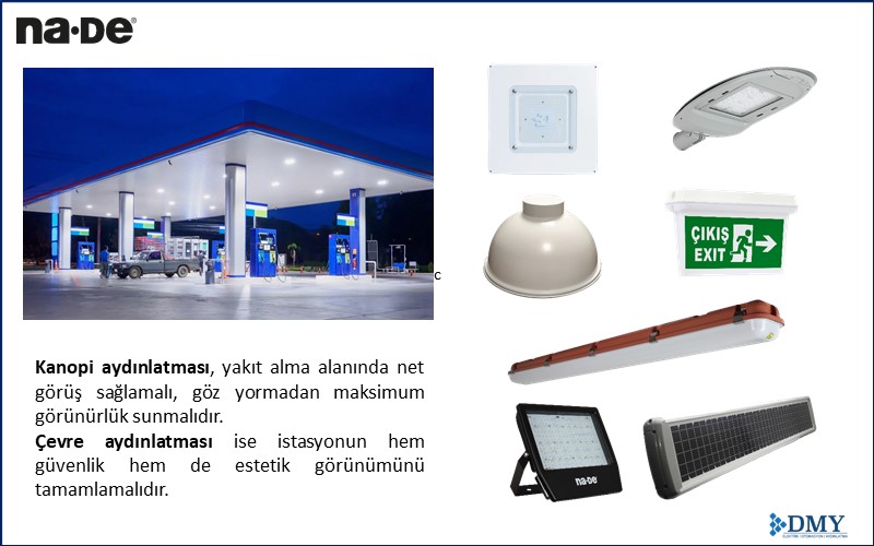 Na·De çözümleri ve DMY Elektrik Otomasyon Aydınlatma’nın güçlü ürün portföyü ile akaryakıt istasyonları hem görünür, hem güvenilir, hem de sürdürülebilir şekilde işletilebilmektedir.