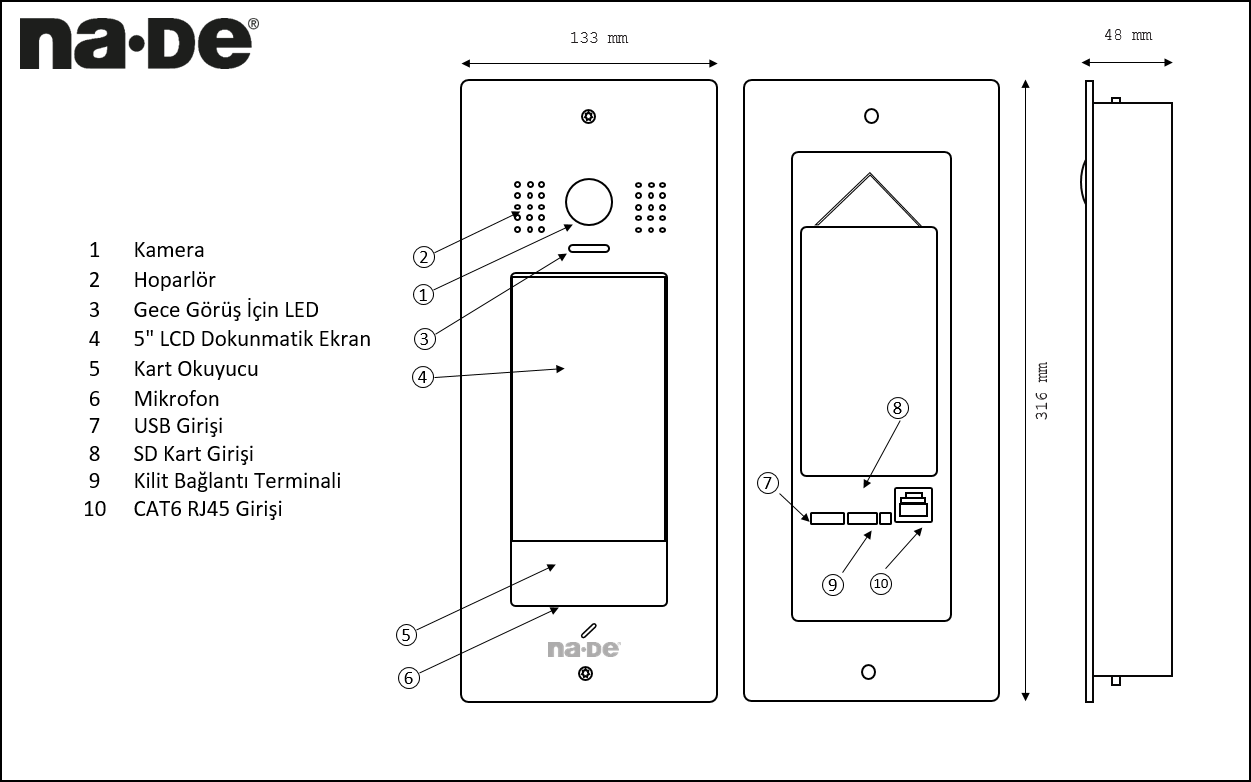Cihaz; 5 inç TFT renkli ekranı, entegre kart okuyucusu ve dijital tuş takımı ile güvenli, pratik ve erişilebilir bir giriş kontrolü sağlar.