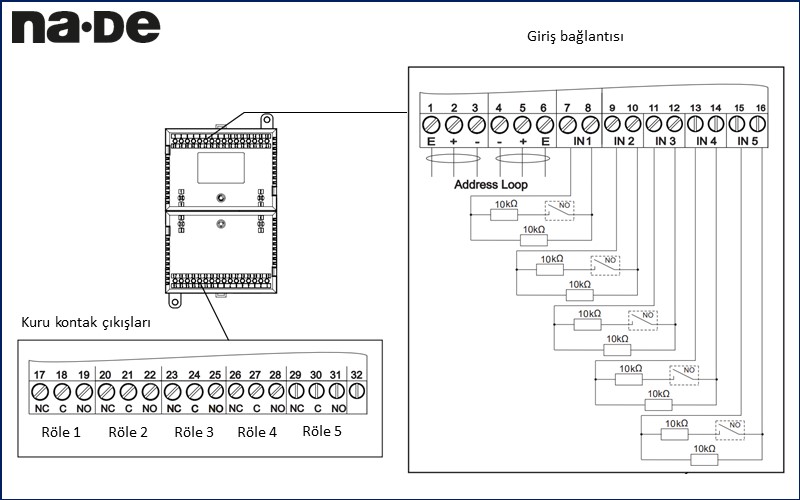Otomatik adresleme özelliği ile panel üzerinen adreslenir ve ayrıca el tipi adrsleme cihazına ihtiyaç duymaz.