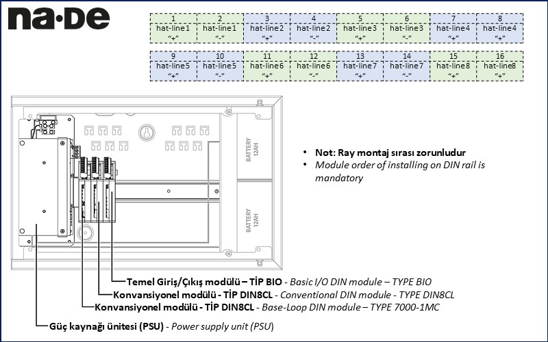 DIN8CL modülü, 7000-1MC Sisteminin kapasitesini genişletmek için 8 adet konvansiyonel zon sağlar.