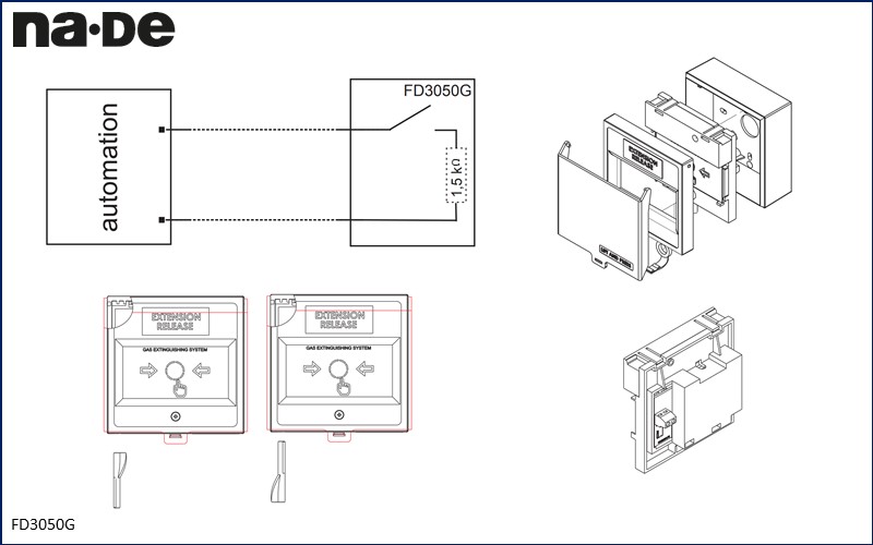 FD3050G Uzatma Çağrı Butonu, bağımsız çalışacak şekilde tasarlanmıştır. İlave (bağımsız) otomatik sistemleri devreye almak için kullanılabilir ve ek söndürme maddesi kaynağından söndürme işlemini gerçekleştirebilir.